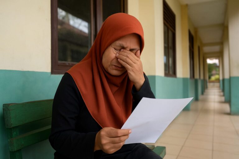 “Saya pernah melihat seorang ibu duduk di serambi sekolah, memegang formulir keberatan. Tangannya gemetar, bukan karena takut, tapi karena harga dirinya merasa diuji. Ia bilang pelan: ‘Saya ingin anak saya tetap sekolah, Pak… tapi saya tidak punya uang sebesar itu.’