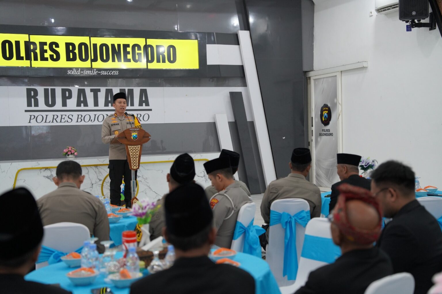 Dengan mengusung tema “Bersama Membangun Negeri, Polri Untuk Masyarakat”, kegiatan tersebut turut dihadiri Wakapolres Bojonegoro, para pejabat utama (PJU) Polres Bojonegoro, Ketua Dai Kamtibmas KH. Alamul Huda Masyhur, serta para dai dan pendeta Kamtibmas.
