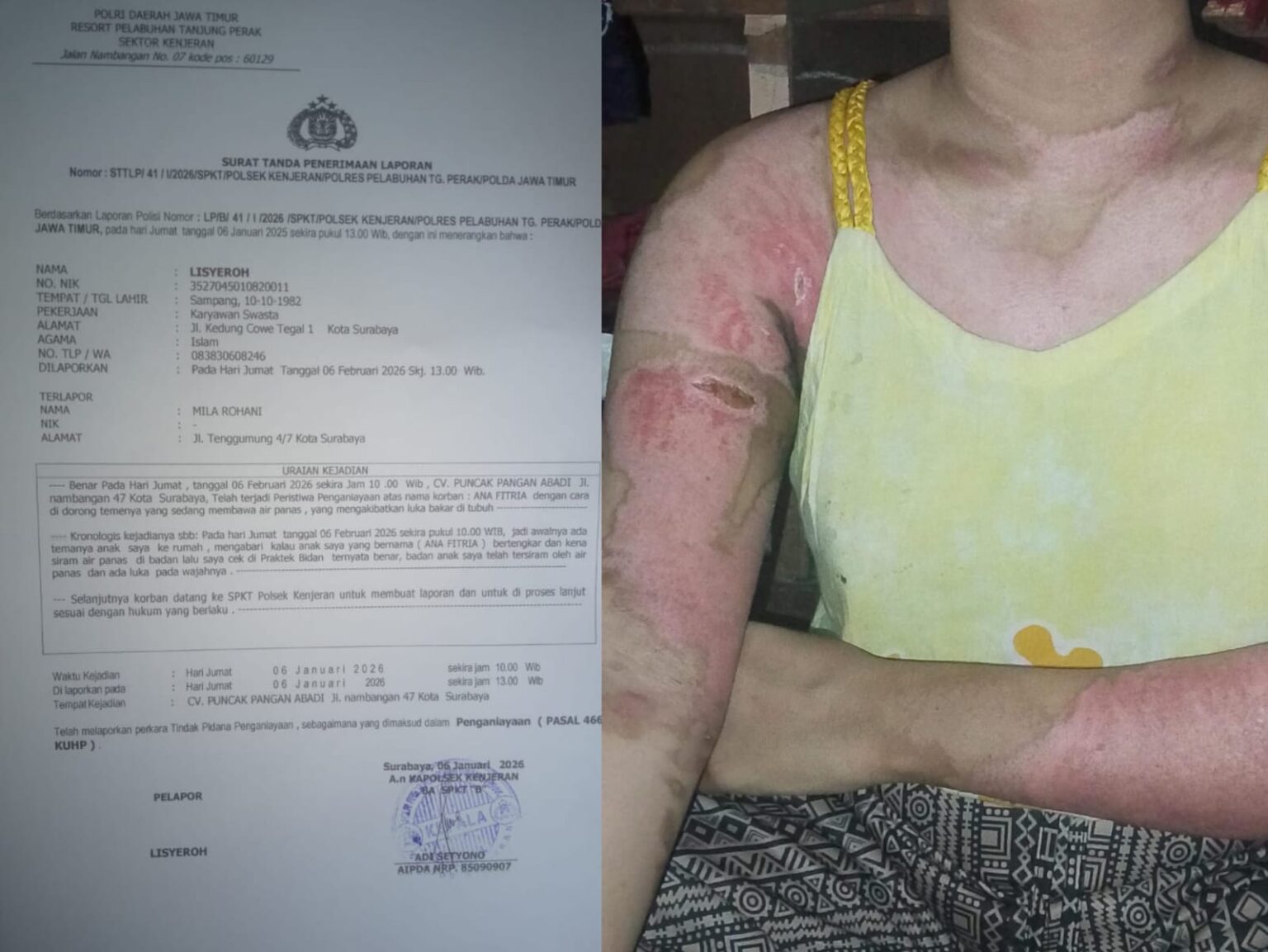 Berdasarkan laporan kepolisian (LP) nomor : LP/B/41/I/2026/SPKT/Polsek Kenjeran/Polres Pelabuhan Tanjung Perak-Polda Jawa Timur, Pada Hari Jumat 06 Januari 2026, sekitar pukul 13.00 Wib (siang hari), Lisyeroh selaku orang tua korban (Ana Fitria) warga jln Gedung Cowek Tegal 1, melaporkan atas peristiwa penganiayaan terhadap anaknya ke Polsek Kenjeran (red), Wilayah Hukum Polres Tanjung Perak (KP3), awak media mencoba mengkonfirmasi keluarga Korban yakni Lisyeroh selaku orang tuah korban mengatakan, Penganiayaan tersebut terjadi di jln Nambangan No : 47, tepatnya CV. Puncak Pangan Abadi dimana dia (Ana Fitria) bekerja,” ucapnya.