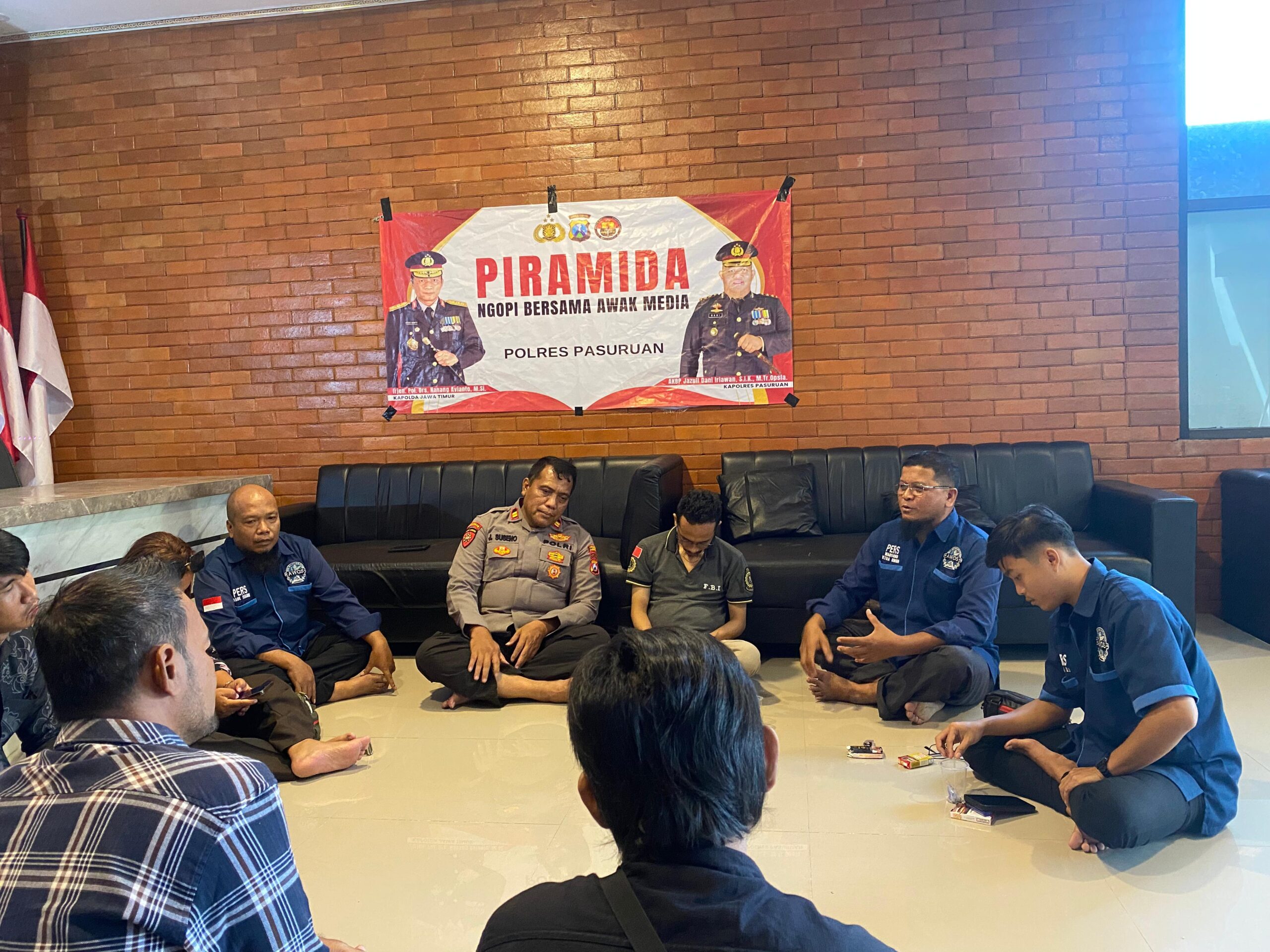 Acara berlangsung dalam suasana santai namun substantif. Di balai wartawan polres pasuruan.