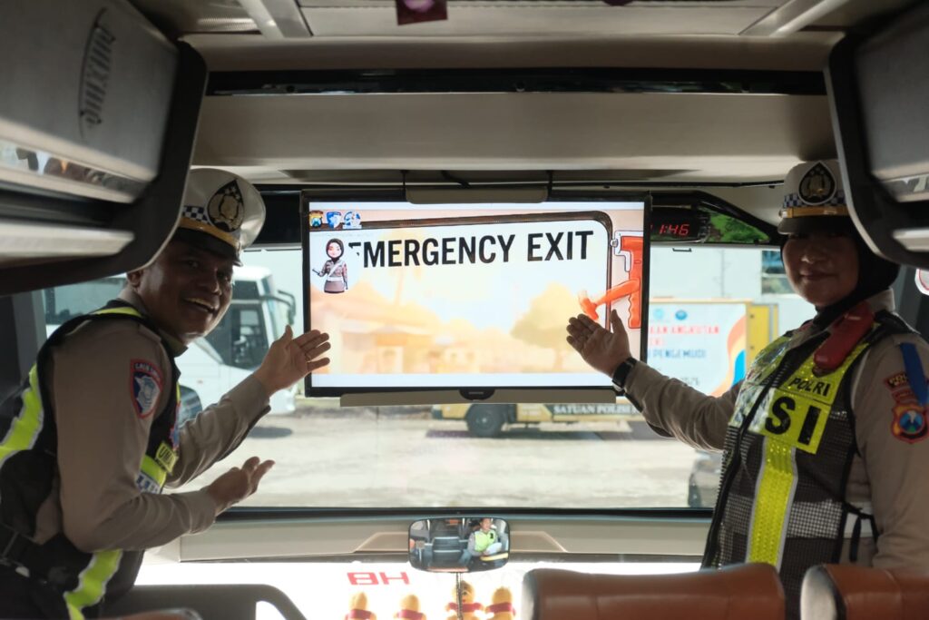 Salah satunya melalui program “Polantas Menyapa” dengan penayangan video keselamatan di bus angkutan penumpang.