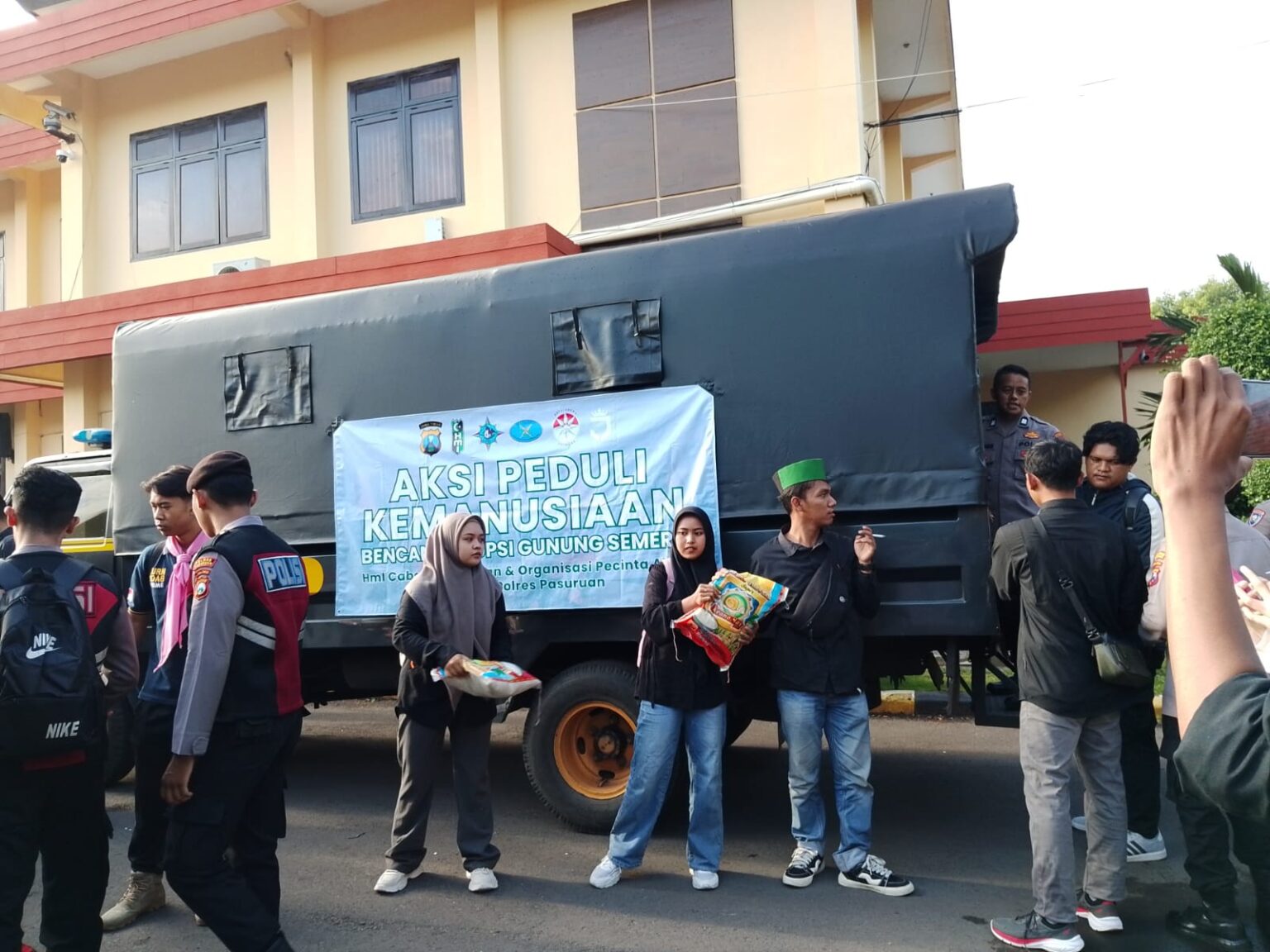 PASURUAN – Polres Pasuruan bersama aliansi mahasiswa Kabupaten Pasuruan memberangkatkan bantuan sosial untuk korban erupsi Gunung Semeru di Kabupaten Lumajang, Jumat (5/12/2025) pagi.
