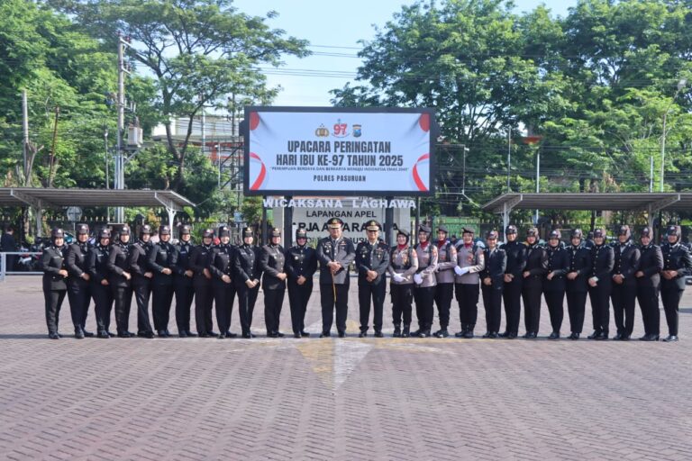 PASURUAN, Polres Pasuruan menggelar Upacara Peringatan Hari Ibu ke-97 Tahun 2025 sebagai bentuk penghormatan terhadap peran strategis perempuan, khususnya ibu, dalam membangun keluarga, masyarakat, dan masa depan bangsa menuju Indonesia Emas 2045 di Lapangan Mapolres Pasuruan, Senin (22/12/25).
