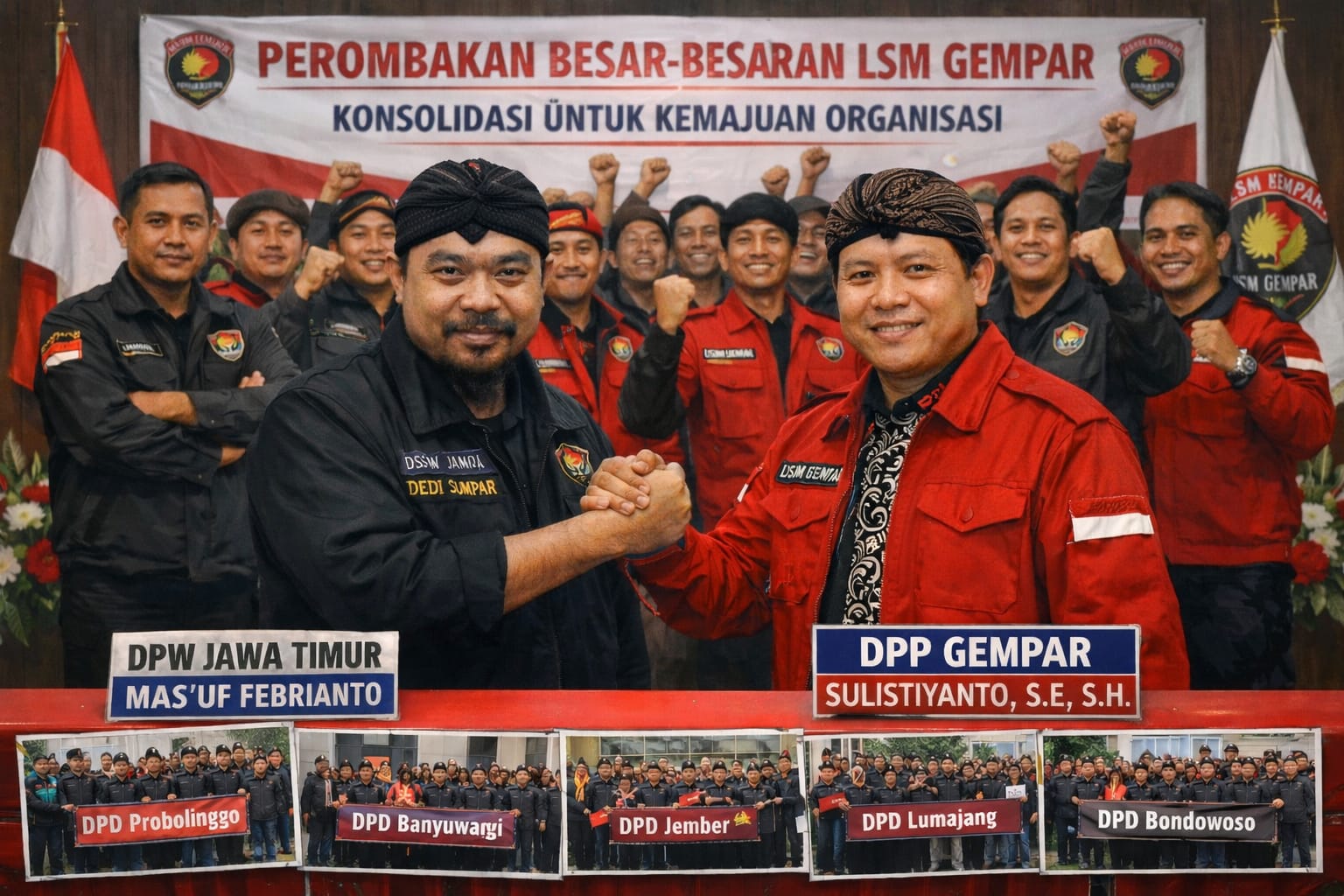 SIDOARJO || JDN – Dewan Pimpinan Pusat (DPP) LSM Generasi Muda Peduli Aspirasi Masyarakat (GEMPAR) resmi melakukan perombakan struktural besar-besaran. Langkah strategis ini diambil guna memperkuat integritas organisasi serta efektivitas pengabdian terhadap aspirasi publik.