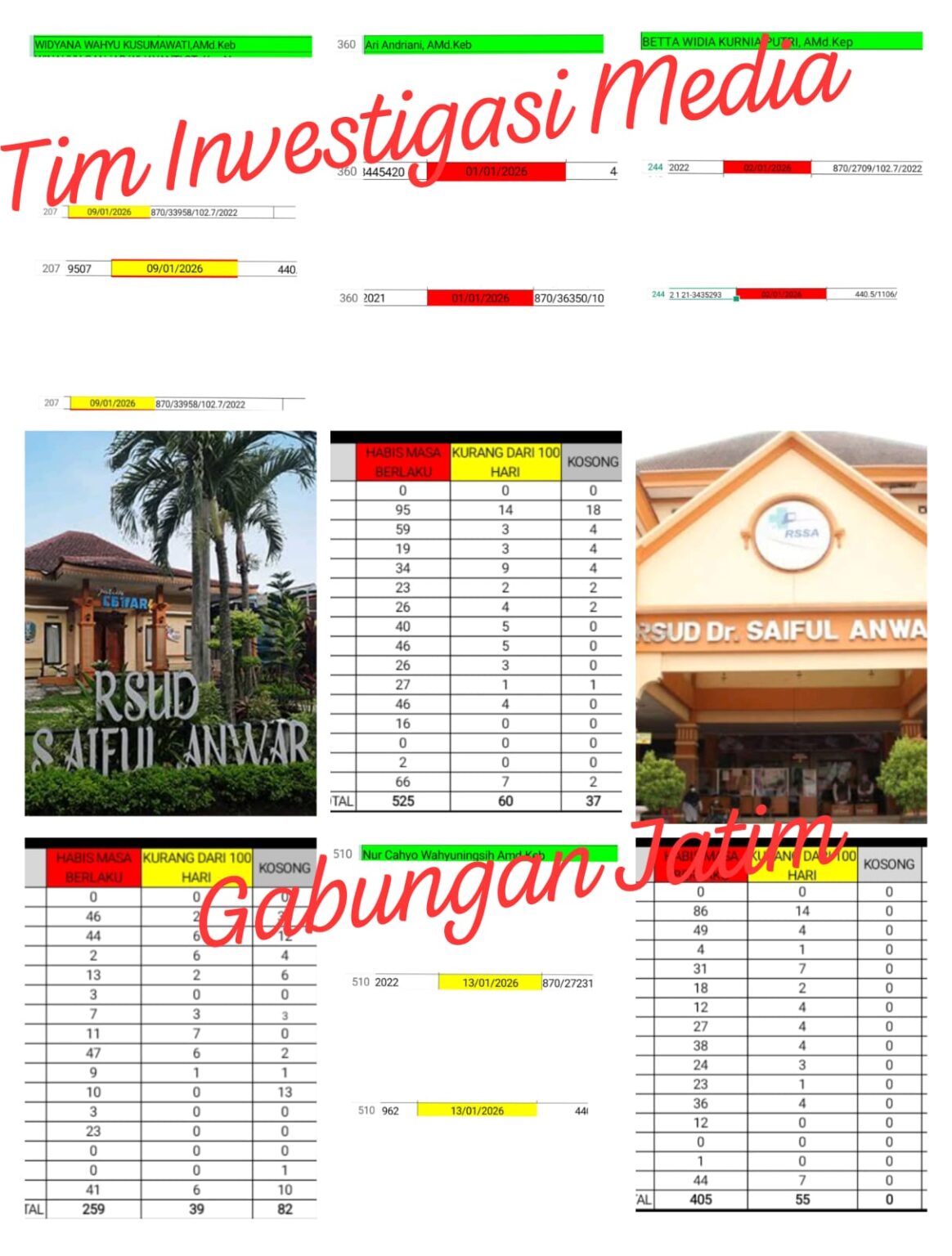 Malang_ Hari Selasa, Tanggal 13, Bulan Januari, Tahun 2026. Rumah sakit Saiful Anwar Malang disinyalir lalukan pembiaran terhadap beberapa oknum bidan dan oknum perawat terkait ijin Surat Tanda Registrasi, (SIPB) Surat ijin Praktek Bidan dan Surat ijin Praktek Perawat (SIPP) yang sudah mati. Kabag SDM rumah sakit Saiful Anwar Malang diduga tidak mau tau dengan adanya STR, SIPP dan SIPB yang sudah mati.